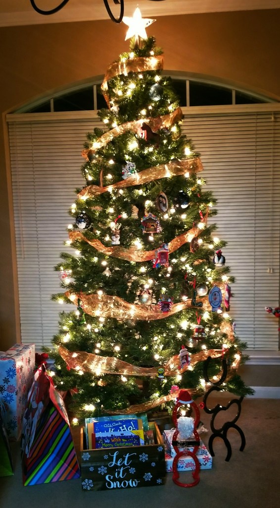This tree is pre-lit (aren’t they all anymore?) and I spent all of 5 minutes fluffing it up.