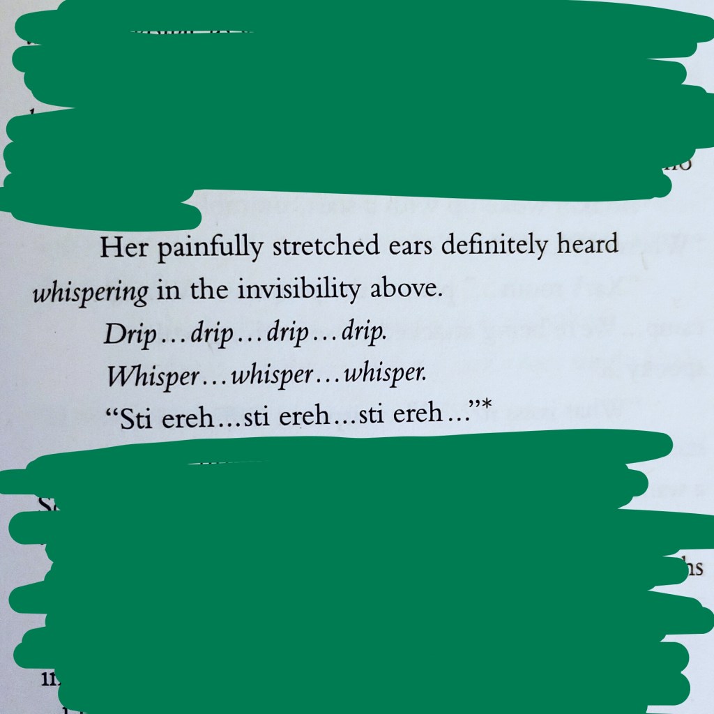 I thoroughly enjoyed this chapter due to the wonderful pacing of the text and the way the author built suspense and fear with few words. And then the action came. I couldn’t turn the page fast enough!