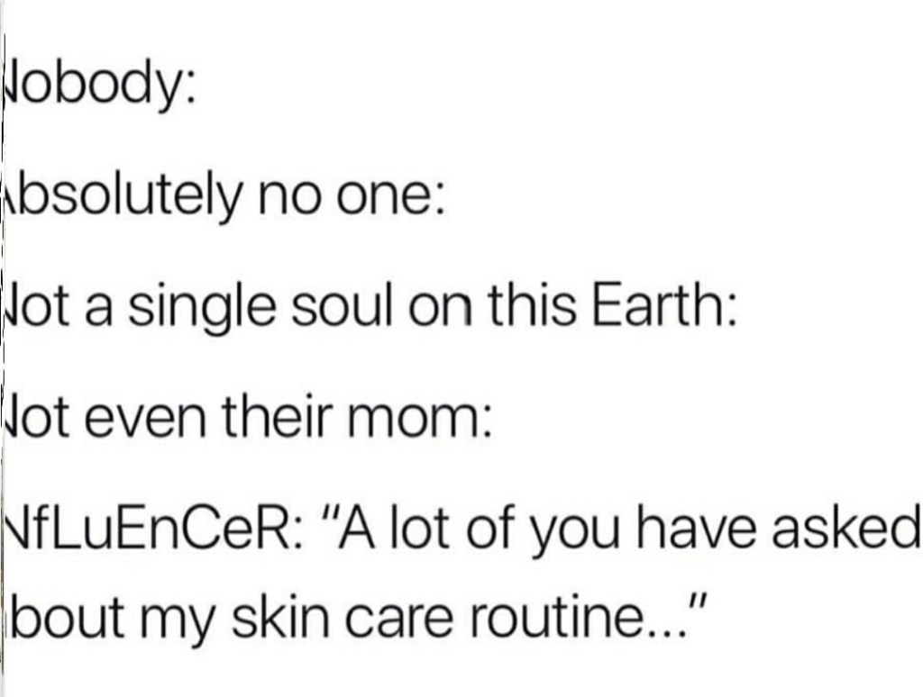 Different from the iNfLuEnCeRs mocked in the meme above, I want to know what people really use – not just what you are paid to try to sell me in this one particular Instagram image.