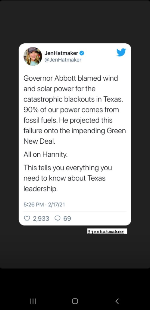 Before you laugh at or share those jokes or memes about how Texans should just toughen up or whatever. Please understand – our homes are literally not made for this weather. I am from the Midwest – I have been through blizzards, ice storms, all of it – I know how to deal with the cold. It’s not the same here. Our houses aren’t insulated for the very cold – prepared to withstand a Category 3 hurricane, sure; freezing temps with now power, not so much. My house currently looks like we were planning for a flood – there are towels and blankets blocking every possible window, doorway, drafty spot, everything. We’ve closed vents and doors on rooms to keep the cold out and the warmth centralized so our furnace doesn’t get too over taxed. We’ve unplugged every possible thing in our house to help conserve energy. We have 3 blankets on every bed and my dog has taken to needing her own blanket while sleeping on the sofa. I am one of the lucky ones who only lost power for 27 hours when the lows dropped to single digits. In Houston, TX. We’ve withstood rolling blackouts for 3 days hoping they can fix the entire grid to get power AND HEAT to everyone. We are conserving as much water as possible to ensure the Boil Notices can be lifted as soon as possible.